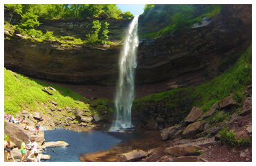Kaaterskill Falls is a two-drop waterfall. The dual cascades total 260 feet, making it one of the Eastern United States' tallest waterfalls.